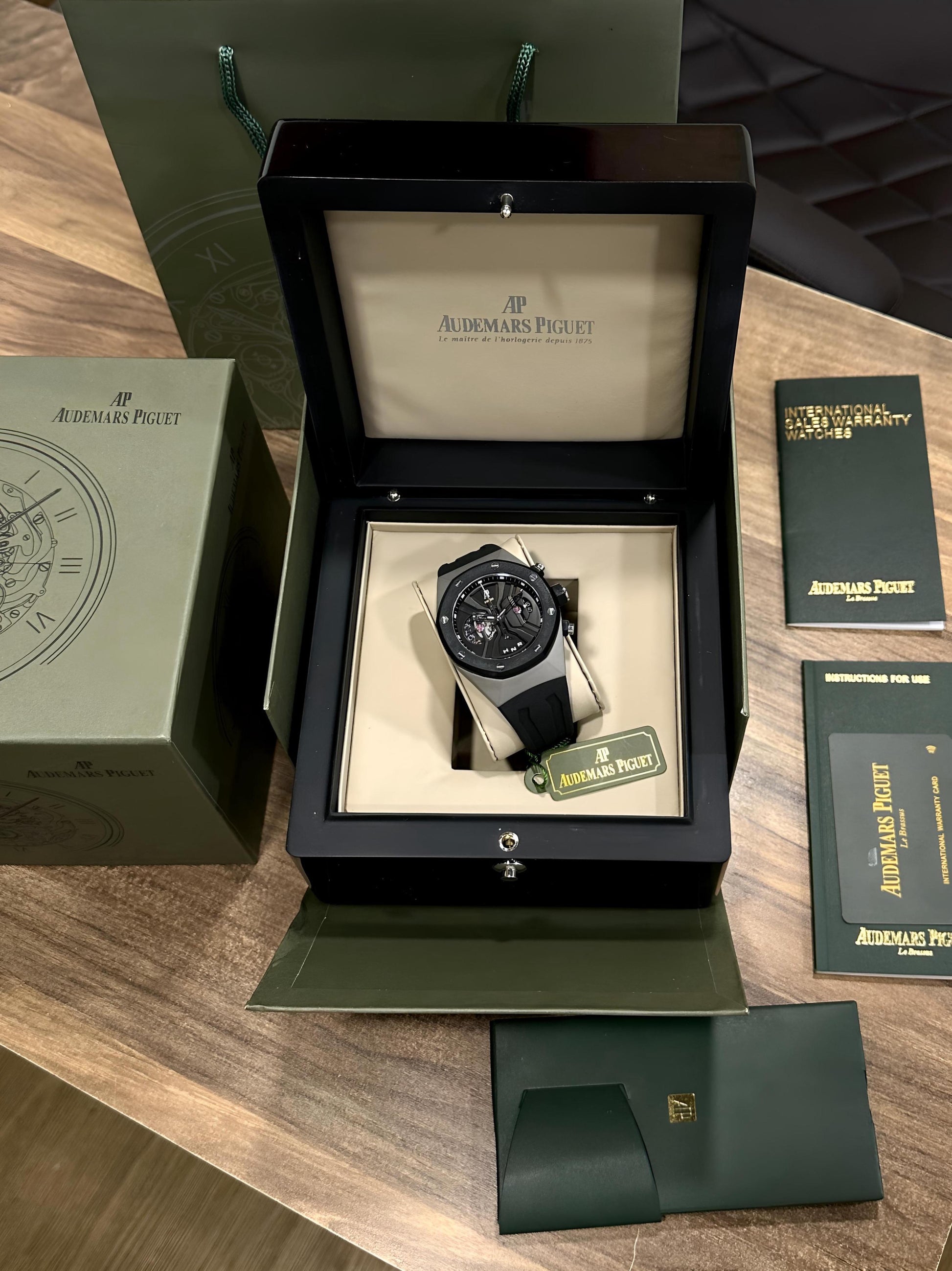 Brand: Audemars Piguet Model: Royal Oak Tourbillon Concept GMT Titanium and Black Ceramic Number - 26560IO.OO.D002CA.01