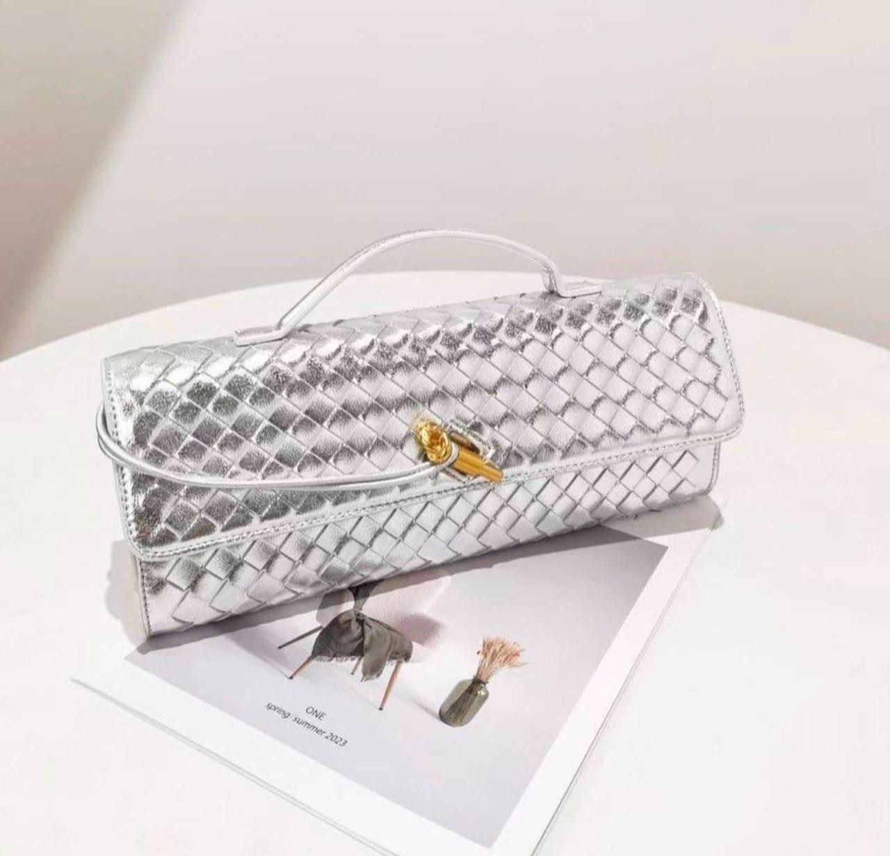Sleek and elongated clutch design with signature Andiamo styling