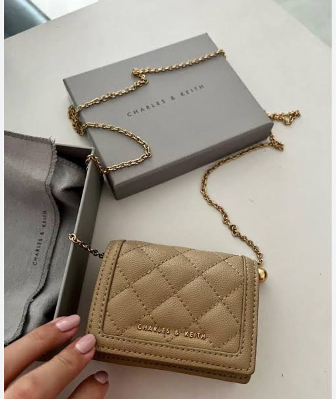 CHARLES & KEITH QUILTED MINI PURSE WITH CHAIN SLING