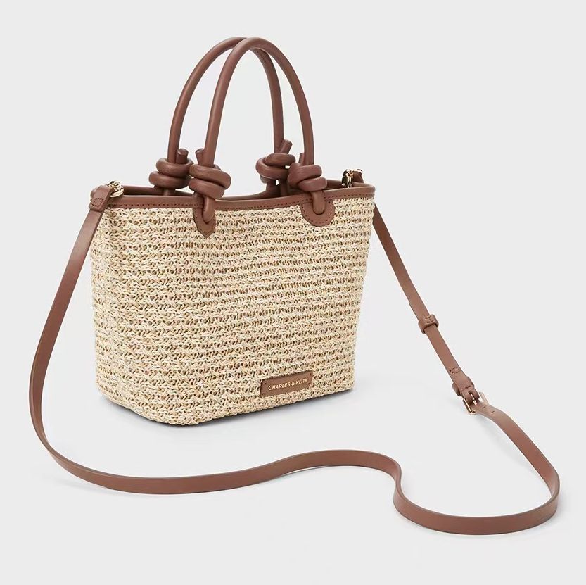 Charles & Keith Sabine Raffia Knotted Handle Small Tote Bag (VD001)