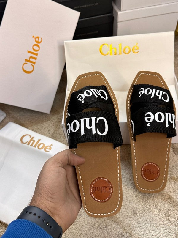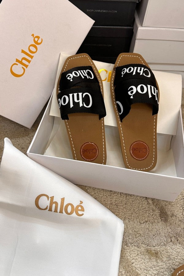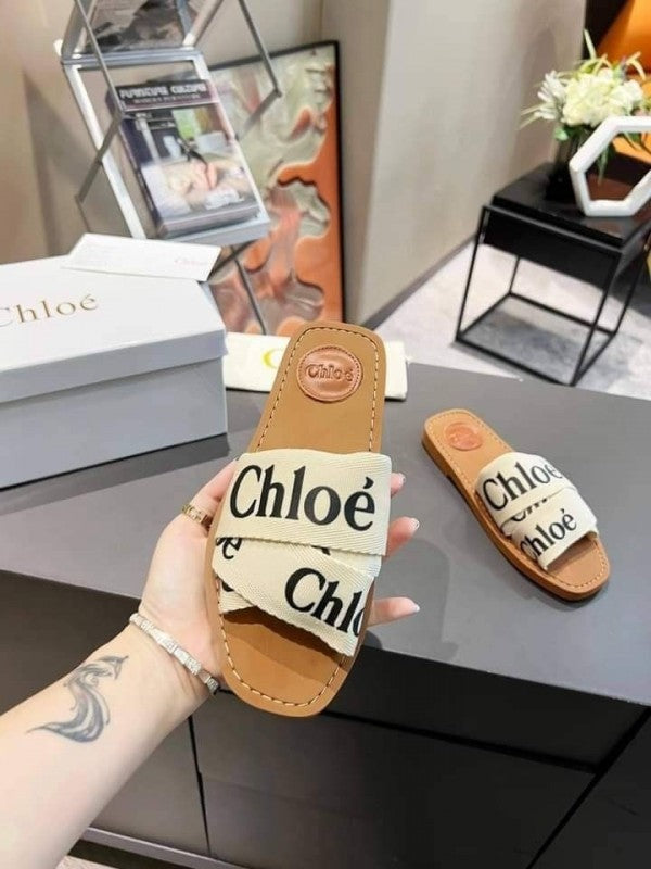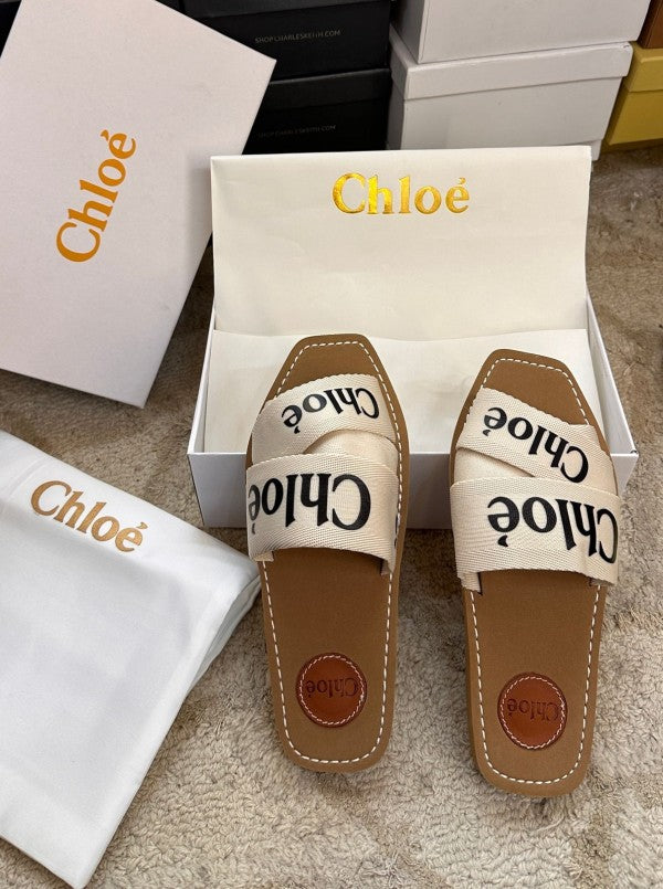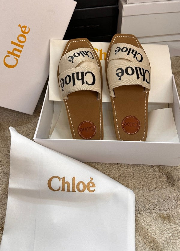 - Chloe Woody Flats Slide With Og Box & Dust Bag