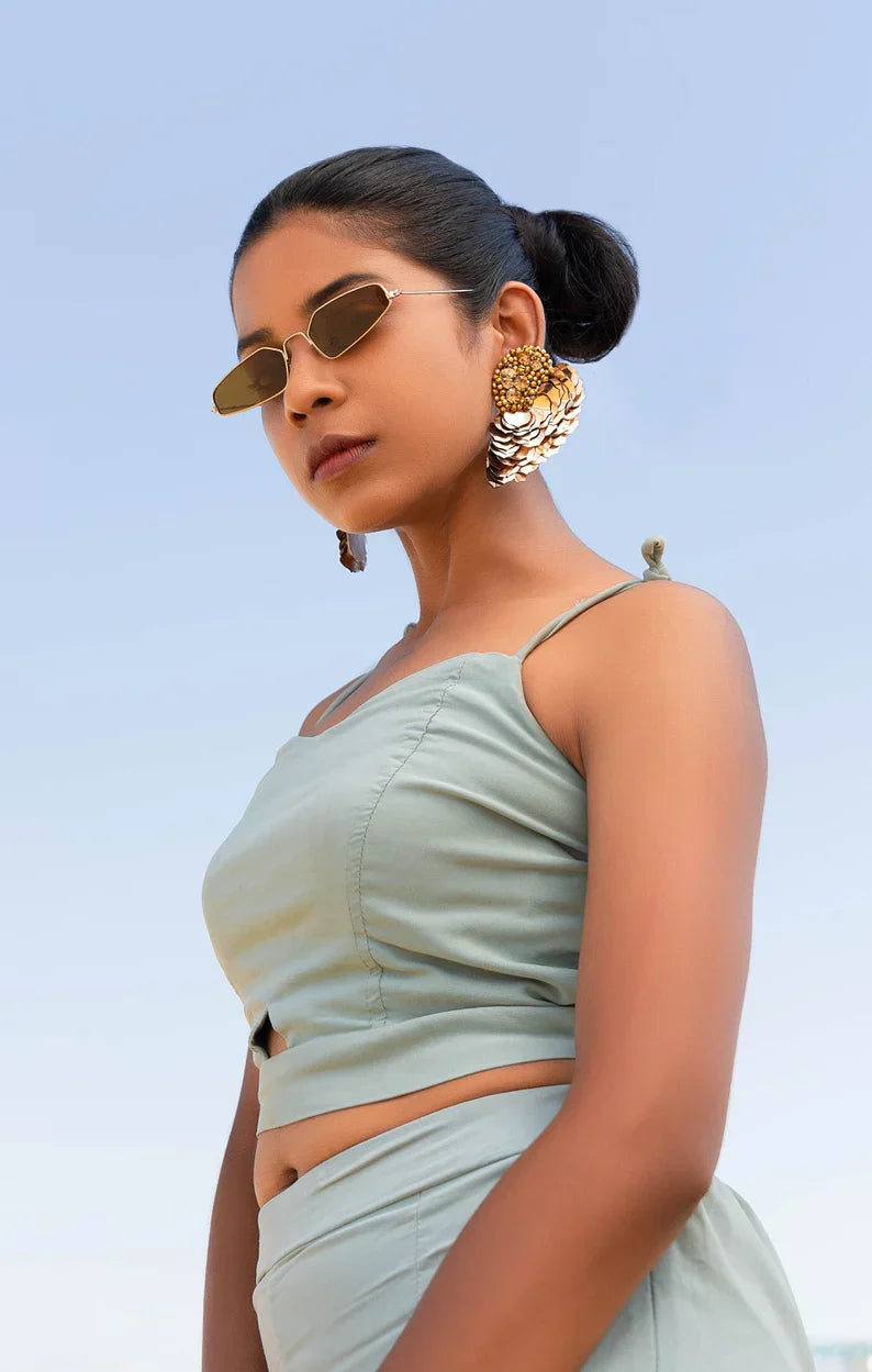 Radiate confidence and elegance with our Gold Statement Hand-Beaded Earrings, designed to be the ultimate expression of glamorous sophistication. Adorned with gleaming gold beads, radiant citrine accents, and delicate metal leaf detailing, these earrings are handcrafted to captivate and elevate your look — whether it's a celebration or a simple day you want to make special.
