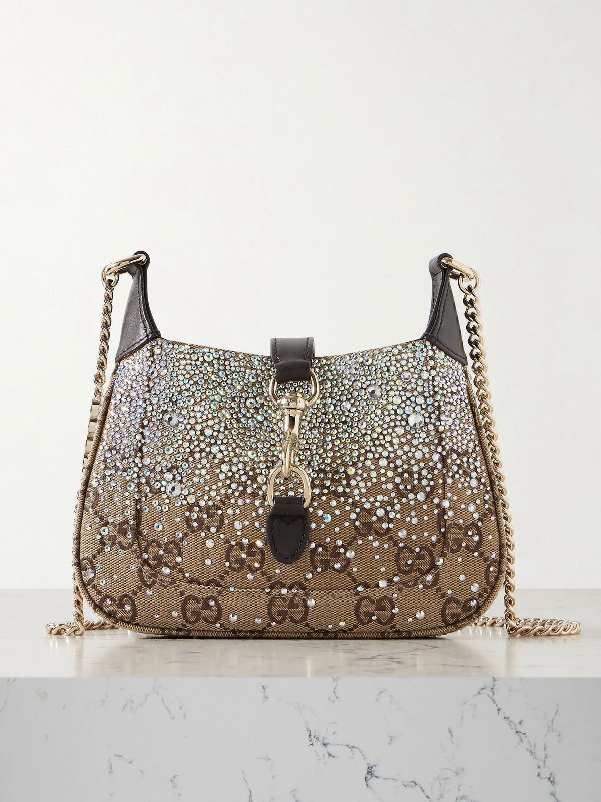 GUCCI JACKIE NOTTE TRIMMED CRYSTAL EMBELLISHED SMALL SHOULDER BAG