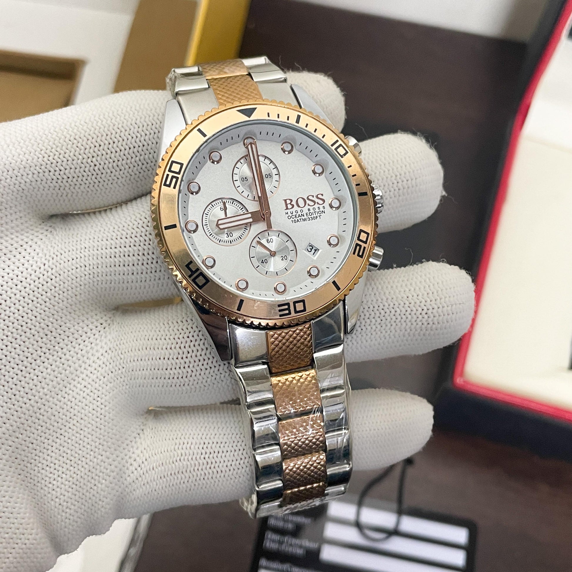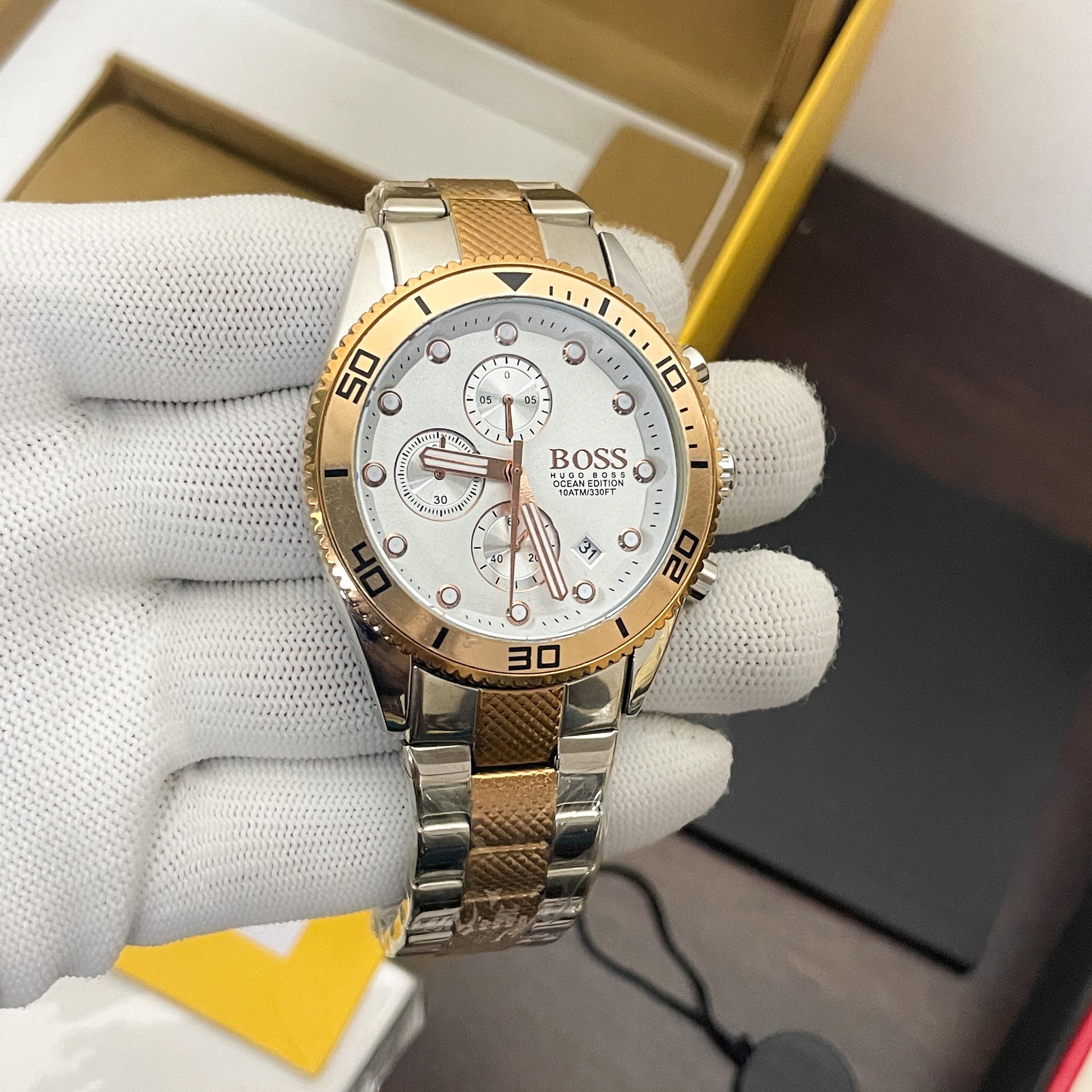 Hugo Boss Ocean edition is a True Classic Timepiece for your Indoor and Outdoor occassion. Attraction with its Gold & Silver Look and Sports Chronograph