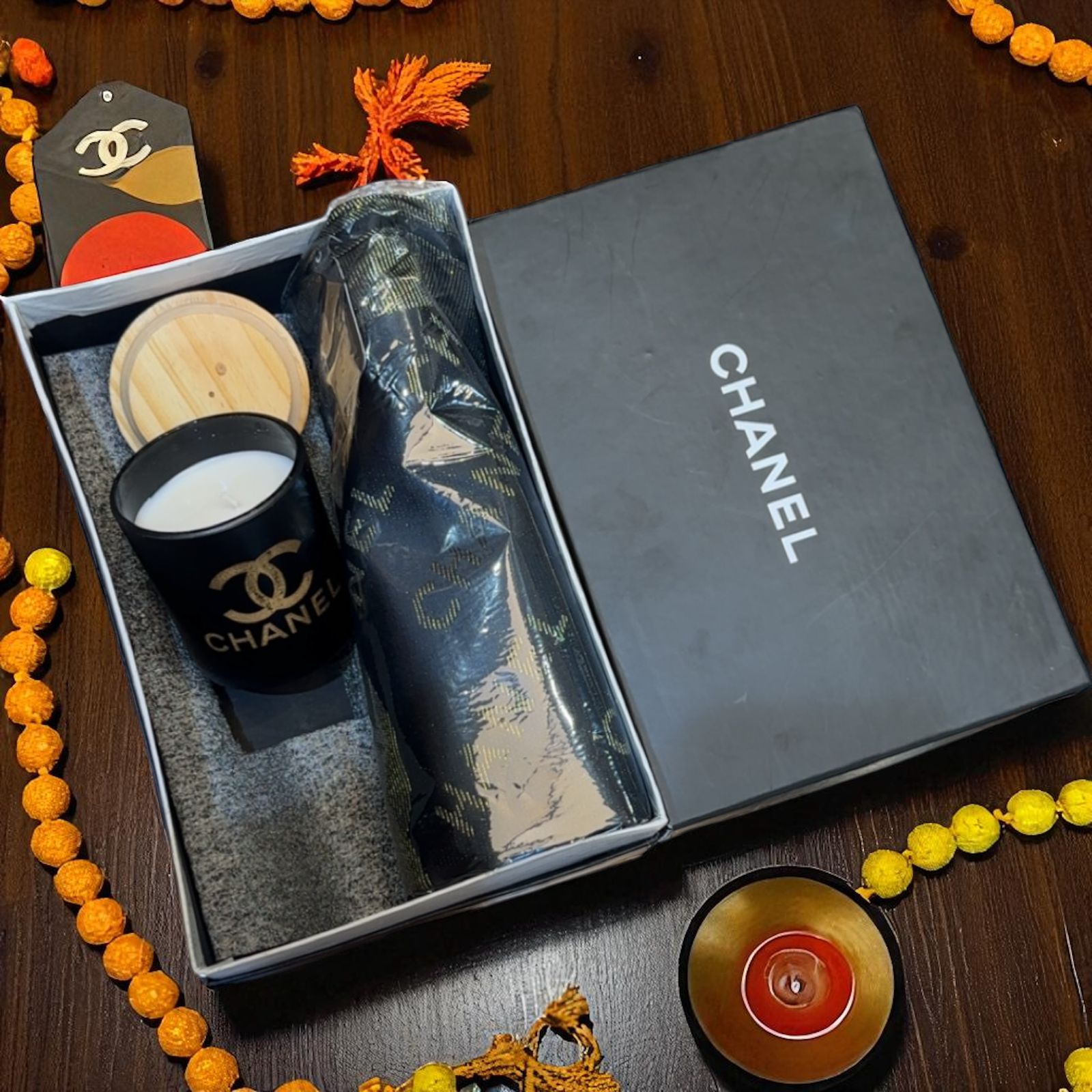 Introducing the Super Premium Chanel Stole & Chanel Scented Candle Gift Set — the perfect festive gifting option for those who appreciate elegance and refinement.