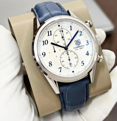 The Tag Heuer Men's Carrera Heritage Silver Dial Dress Watch is a solid and sophisticated timepiece made for a man with discriminating taste. (SM001)