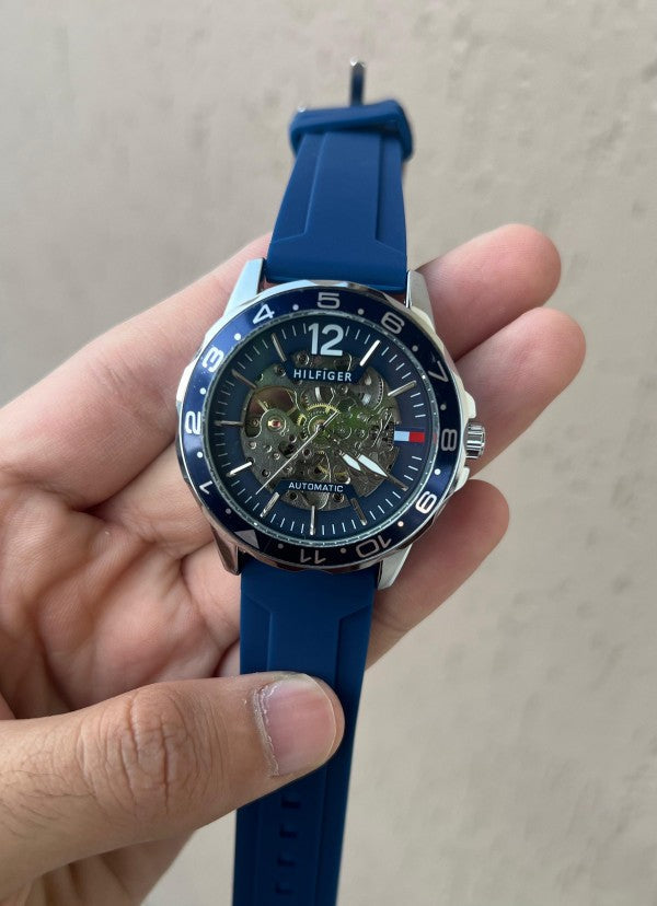 Step up your wrist game with the Tommy Hilfiger All Blue Automatic Watch (inspired edition) – a fusion of bold aesthetics and reliable automatic technology. Its open-heart design gives a peek into the mechanics, making it a standout choice for the modern man.