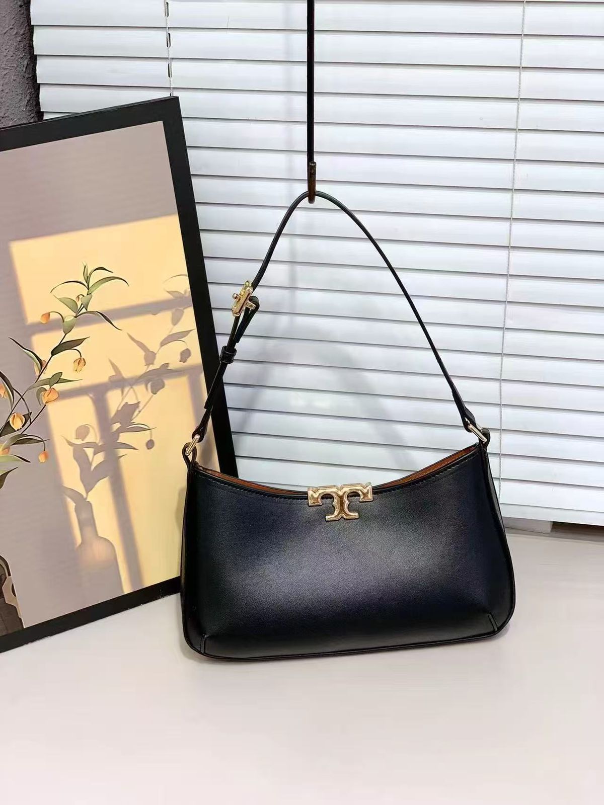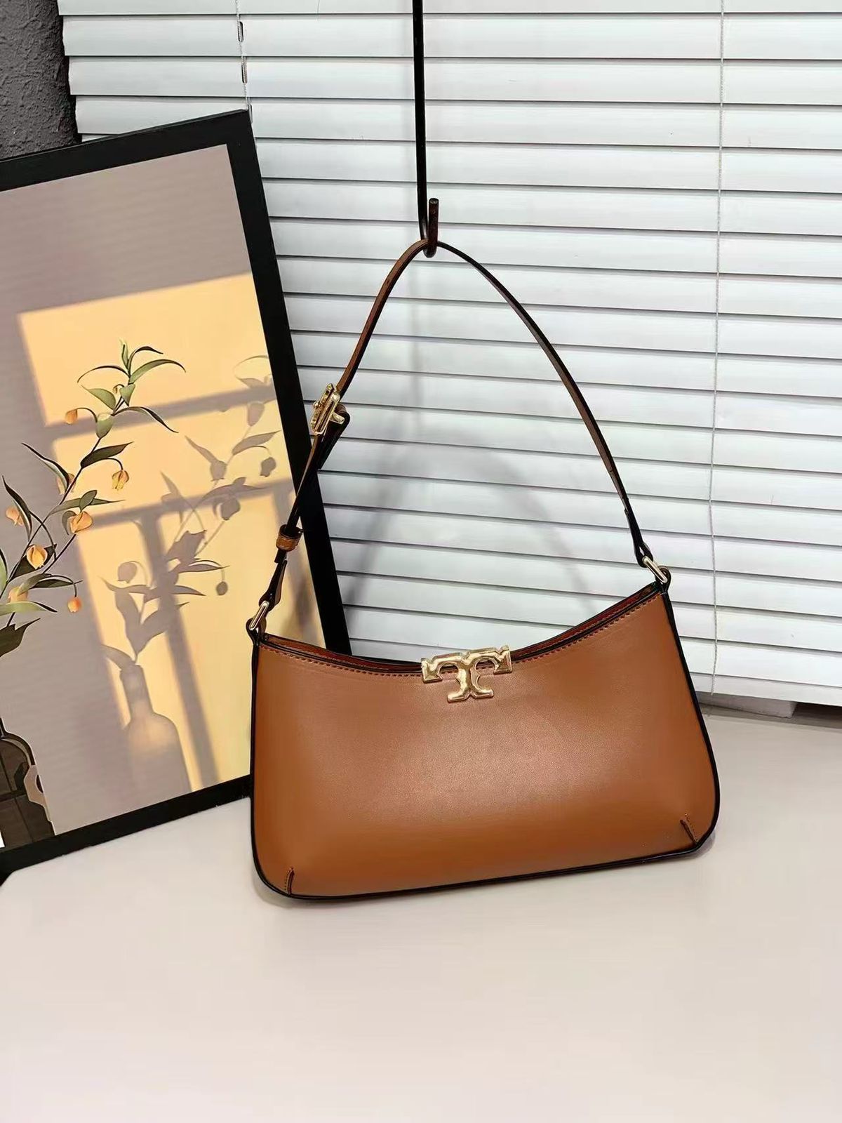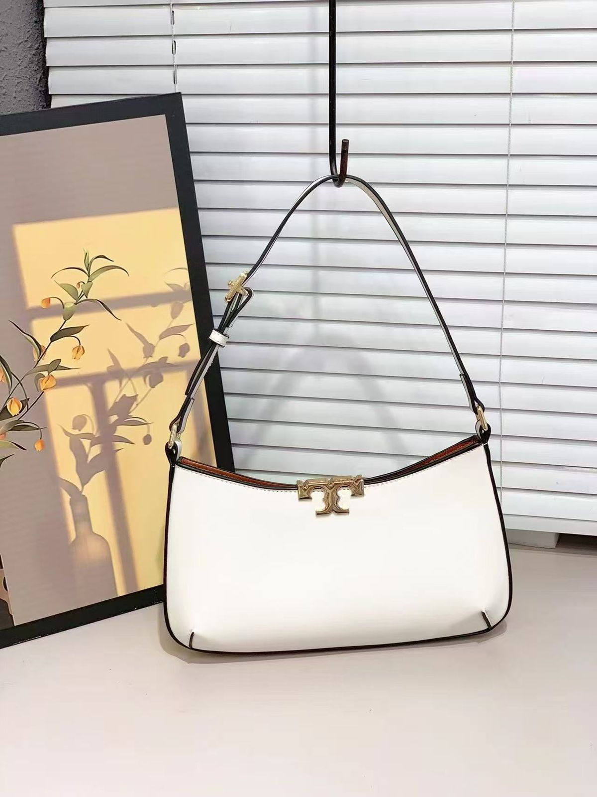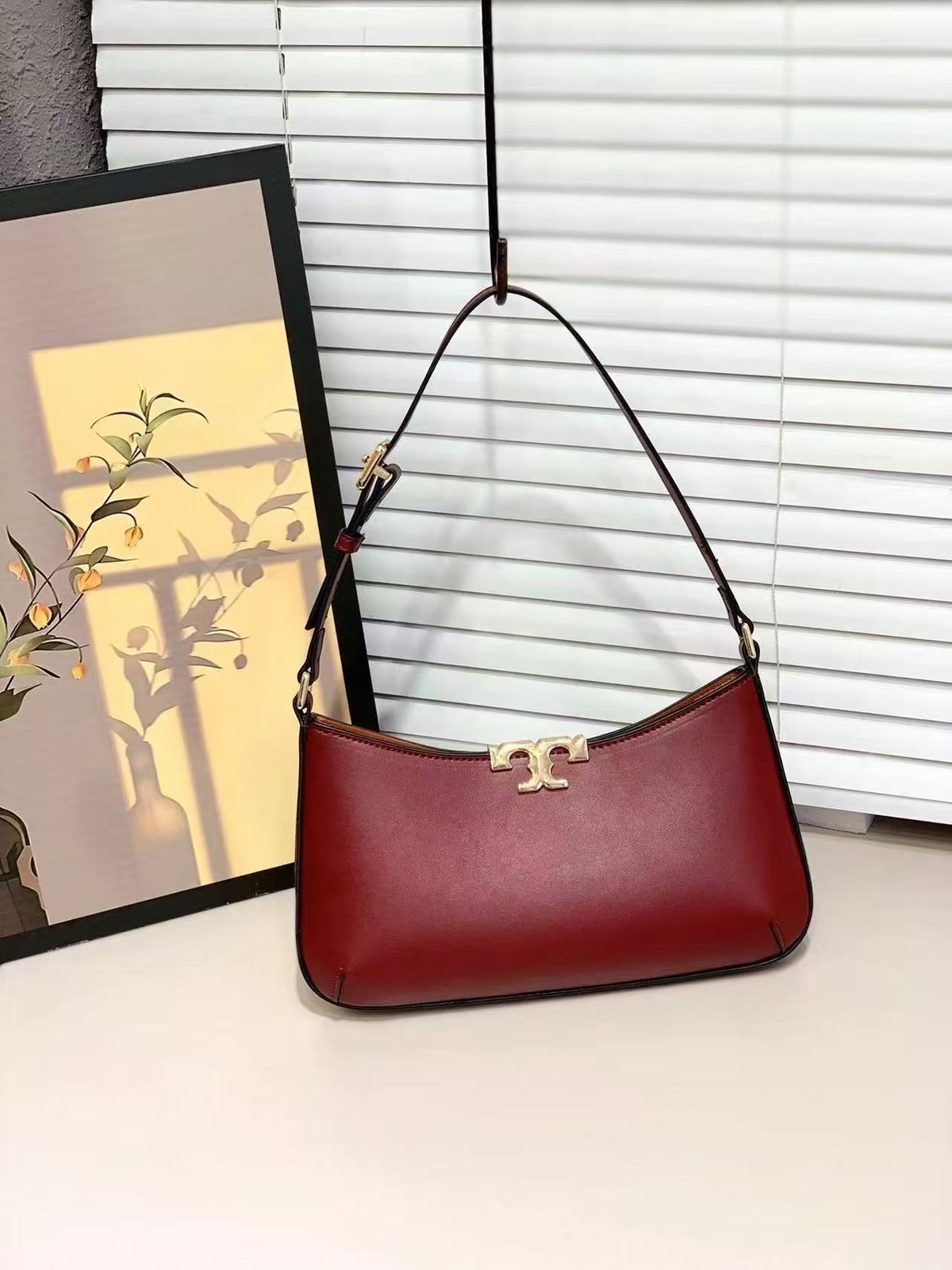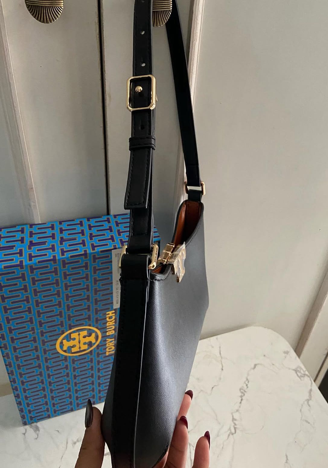 Premium trimmed leather construction with signature Tory Burch elegance