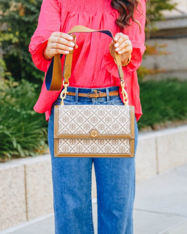 Tory Burch T Monogram Shoulder Bag With Adjustable Strap With OG Box & Dust Bag