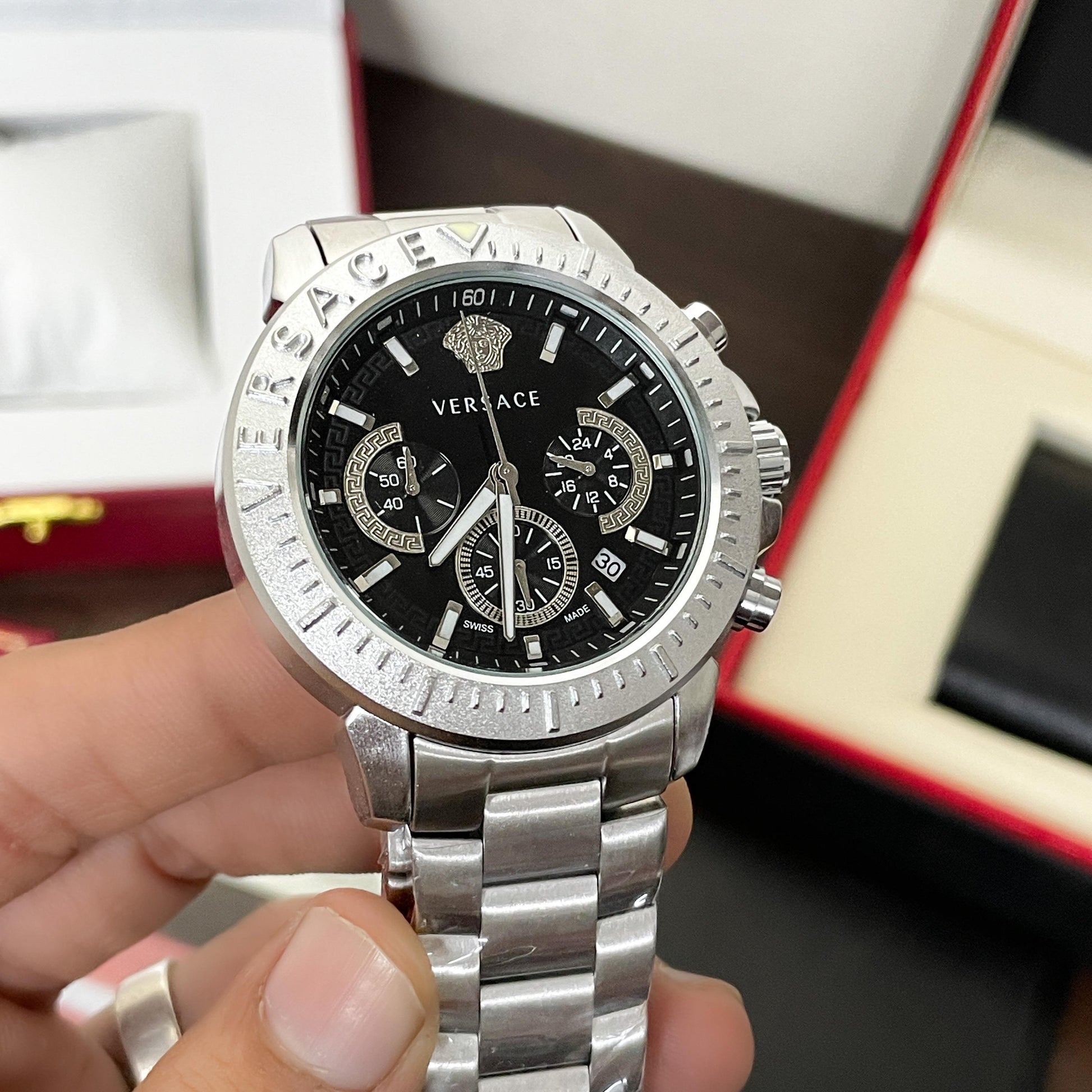 Newest Drop! All New Versace Greca Silver with Black Dial